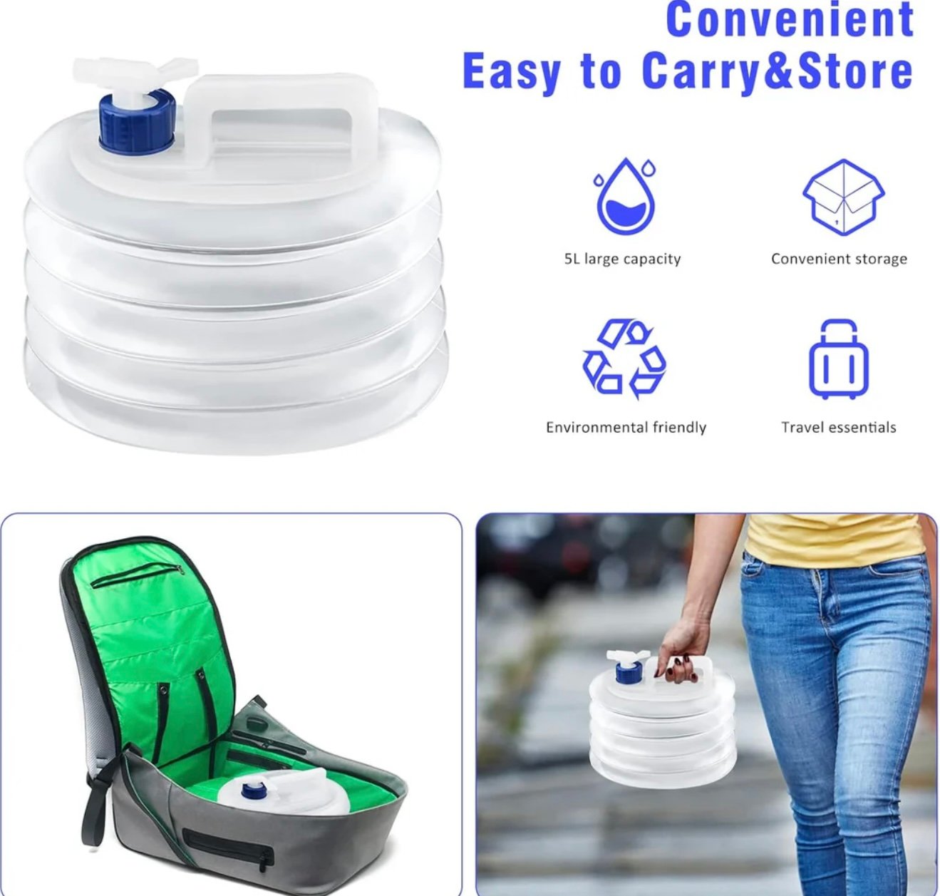 Collapsible Water Container with Tap – 10L / Foldable Camping Water Tank | Portable Drinking Water Storage