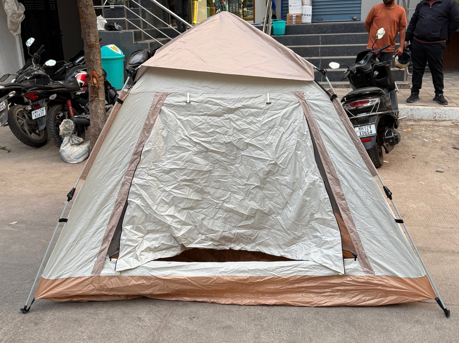 Perfect for camping, trekking, weekend trips, beach camping, and outdoor adventures, this tent offers ample space and reliable protection.