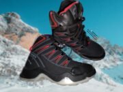 Anti slip Waterproof Ctr Trekking shoes in action Snow trekking ( Black-Red) Rub-50