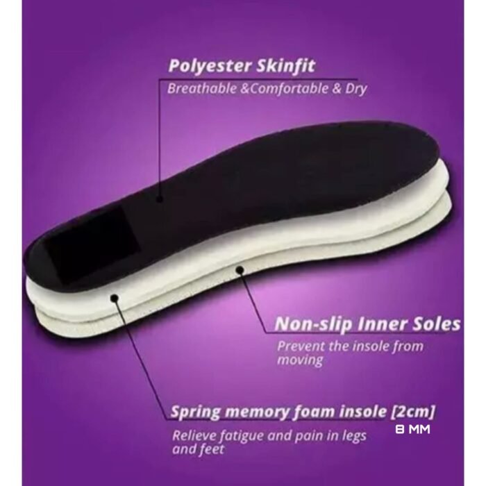 COMFORT : Memory Foam for Shoes Insoles your legs and body will not feel tired, even if you stand for long hours. Your shoes will become so comfortable that Standing, walking, running for long duration won’t make your feet tired