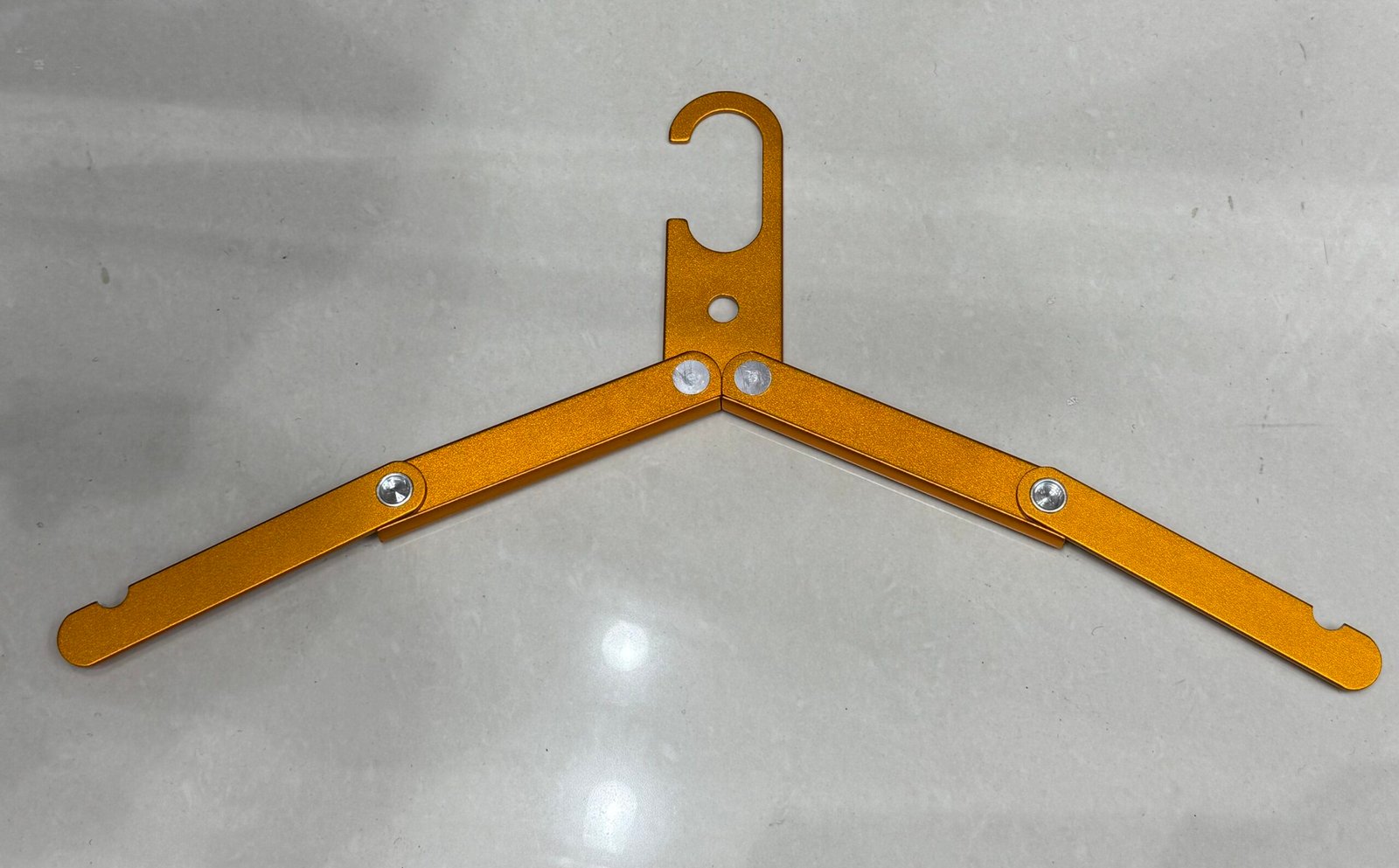 foldable travel hanger, aluminium travel hanger, portable hanger, trekking hanger, backpack hanger, camping accessories, lightweight hanger, travel essentials, compact hanger, metal travel hanger, trail mountain gear accessories, quick dry hanger, hostel travel hanger