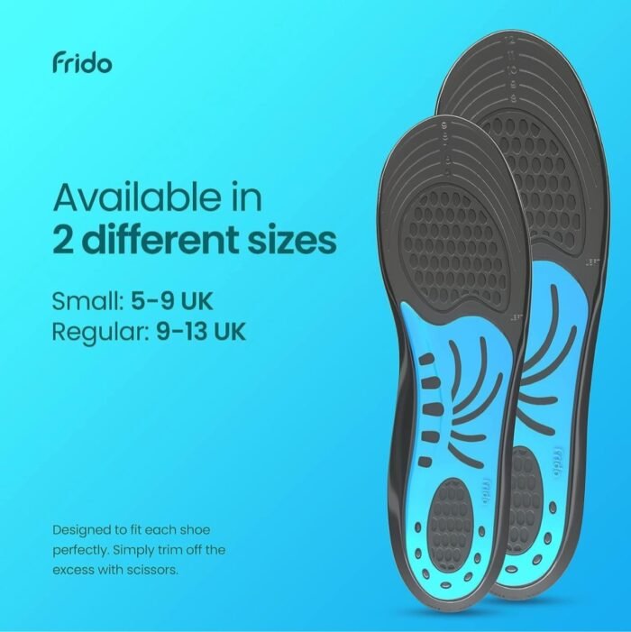 - DON’Ts: 1. Insert Frido insole over already existing insole of shoe 2.Frido insole should NOT be use as additional insole over existing shoe insole. CONTENTS: Contains a Pair of Frido Dual Gel Insoles. Each for the right and left foot. NOTE: Frido insole fit may vary as per shoe design. Frido insole may not fit properly in different types of shoes. For perfect fit and comfort, we recommend using separate Frido insole for each pair of shoes in your wardrobe.