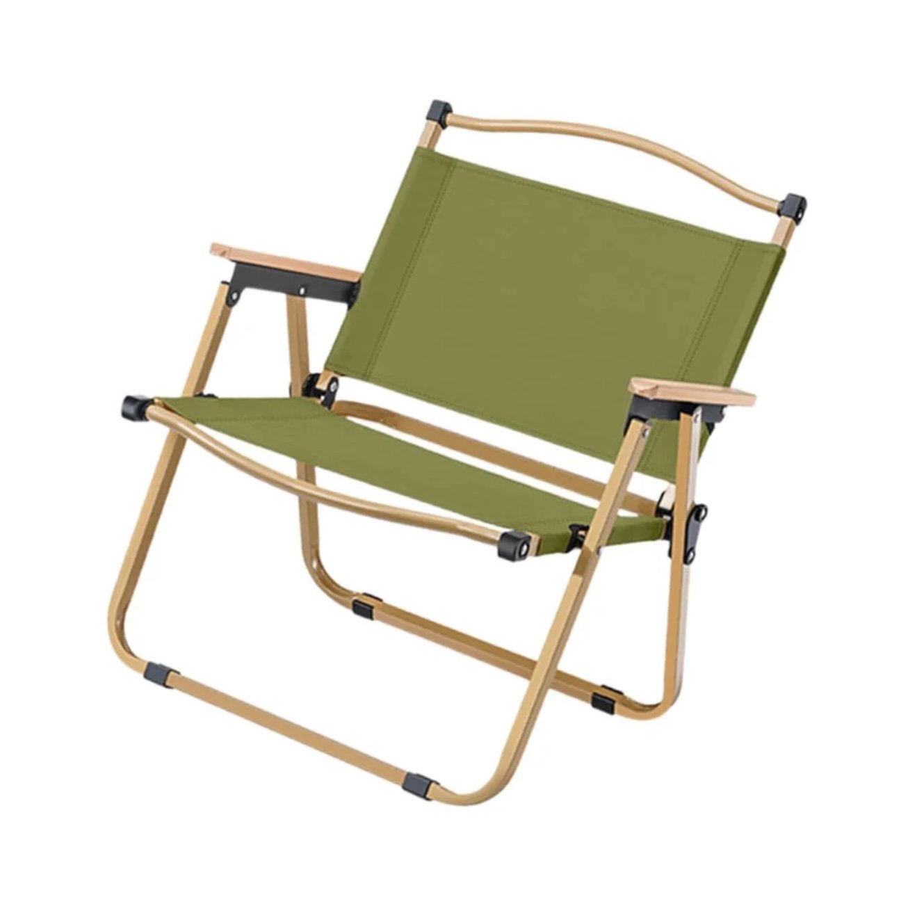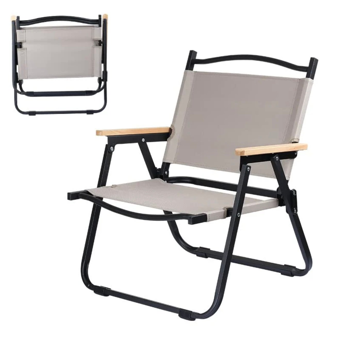 Heavy-Duty Foldable Camping Chair | Portable Outdoor Trekking Chair with Wooden Armrests & Sturdy Steel Frame