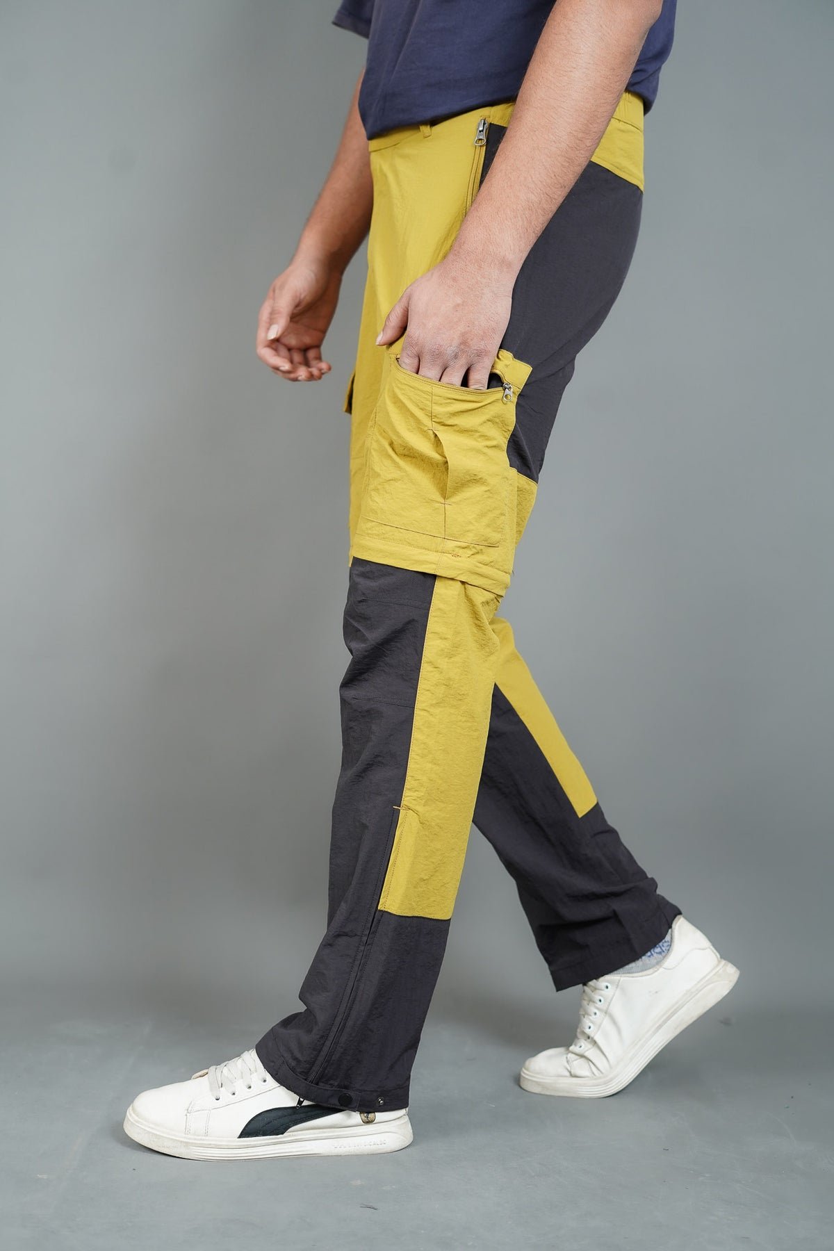 JAG TerraTrek Convertible Trekking Pant | Mustard Charcoal Combination | Bottom Zipper | Ultra Light Crush Fabric