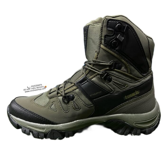 Lakhani Touch High Ankle Light Weight Trekking Shoes | Anti skid water resistant ( MARCOS ) Olive
