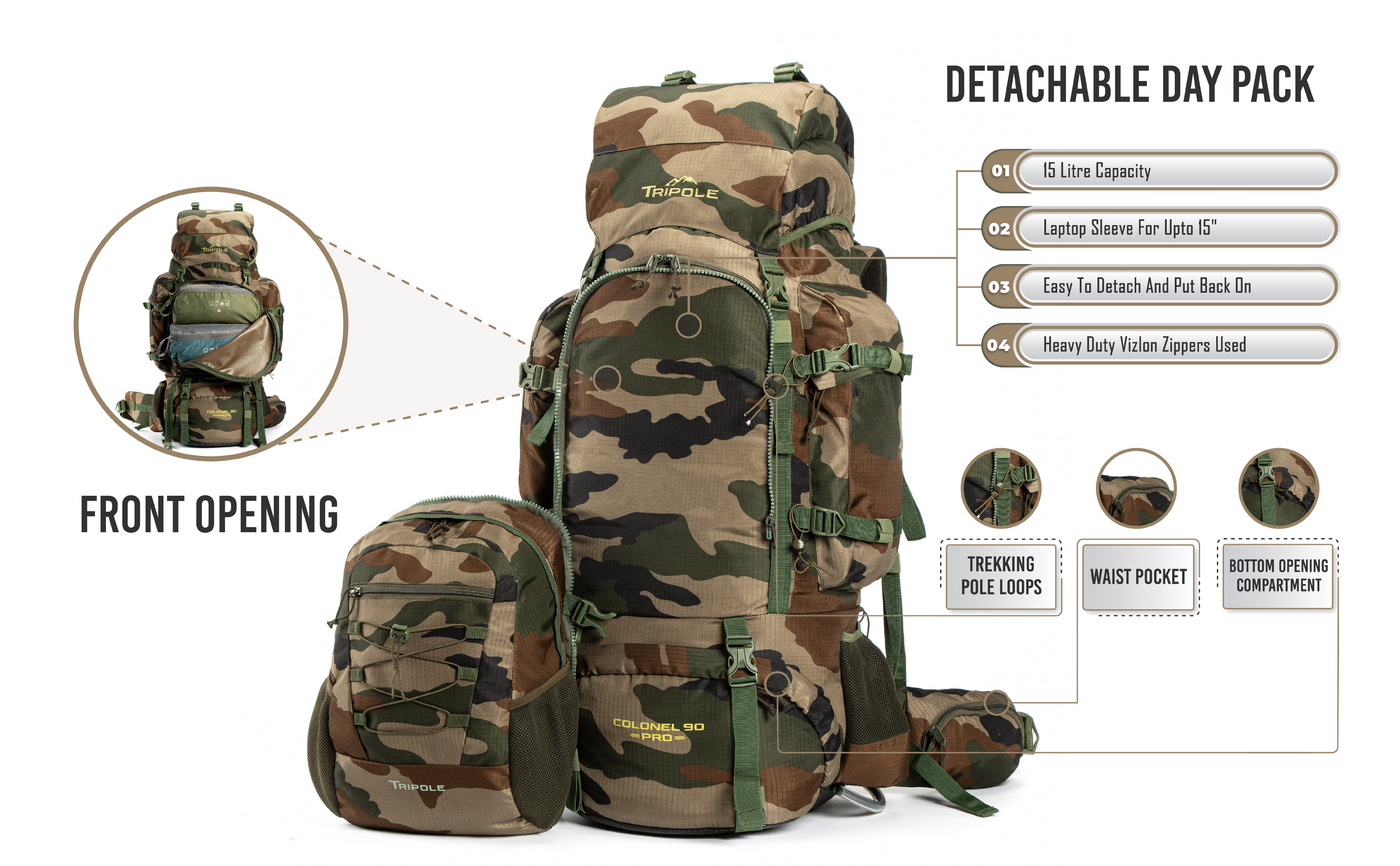 CAPACITY 90 Litres (Including Detachable Day Pack)