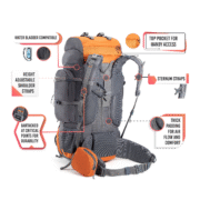 - LARGE & ORGANIZED STORAGE – This trekking backpack offers a generous storage capacity across multiple compartments, making it ideal for 5–9 day hikes, backpacking trips, or camping.