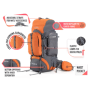 Be the first to review “Tripole Walker 65 Litre Rucksack for Trekking and Travel | Laptop Sleeve | Water Repellent | Rain Cover | 3 Year Warranty Orange & Grey” Cancel reply
