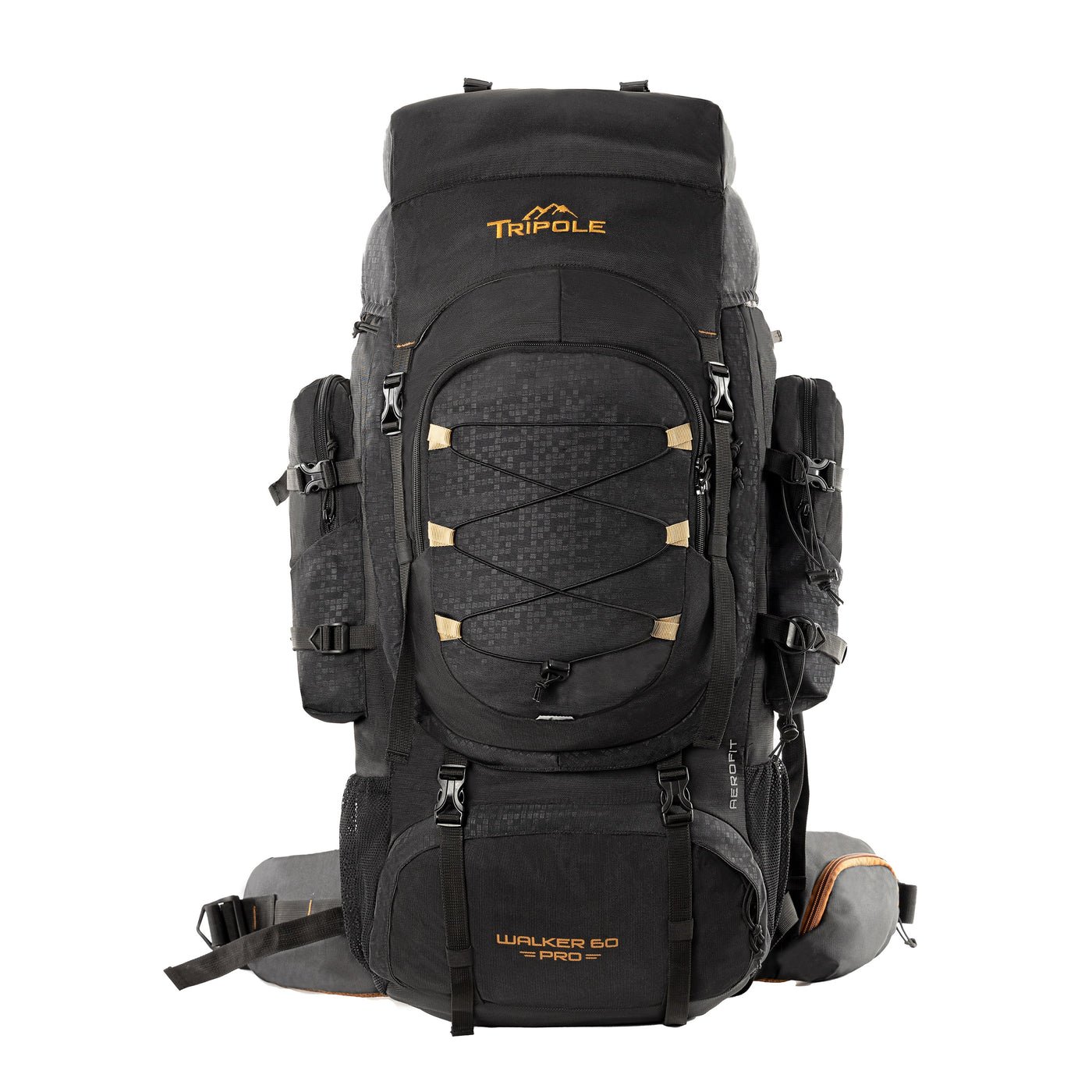 Tripole Walker Pro Metal Frame Rucksack with Rain Cover for Trekking & Travel | Front Opening | Laptop Sleeve | Men & Women | 5 Year Warranty| 60 Litre Black