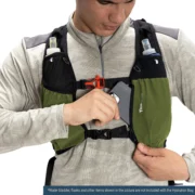 - FRONT DETAILING 2 X 500mL Soft Flask capacity, Zipper pocket for phone/ keys, 1 pocket for gels/ bars, 1 pocket with special loop to stow your glasses or store waste